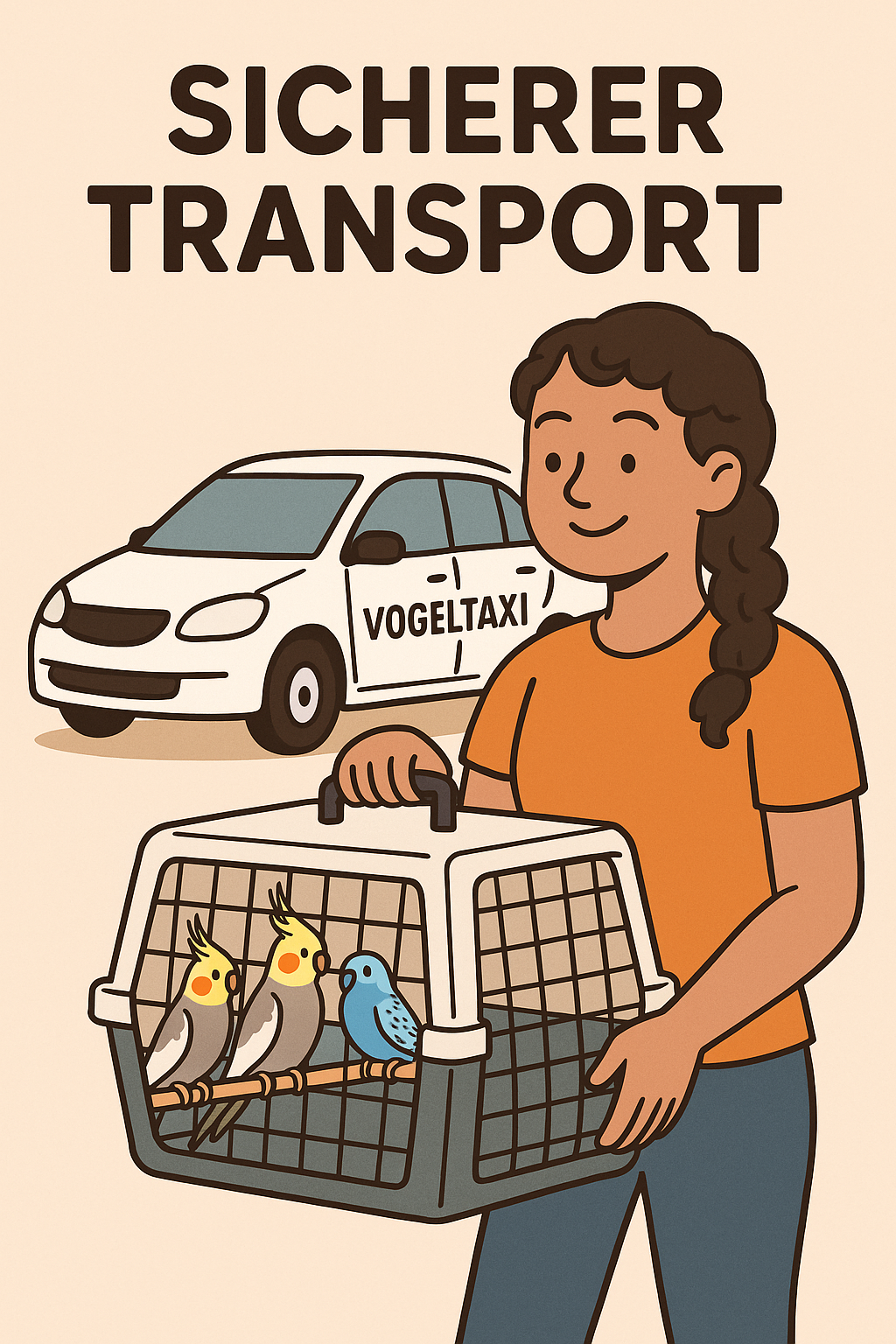 Deine Vögel werden dabei von einem speziell geschulten Transportunternehmen, welches ich gefunden habe, direkt von Haustür zu Haustür gebracht – sicher, umsichtig und mit viel Erfahrung im Umgang mit Tieren.